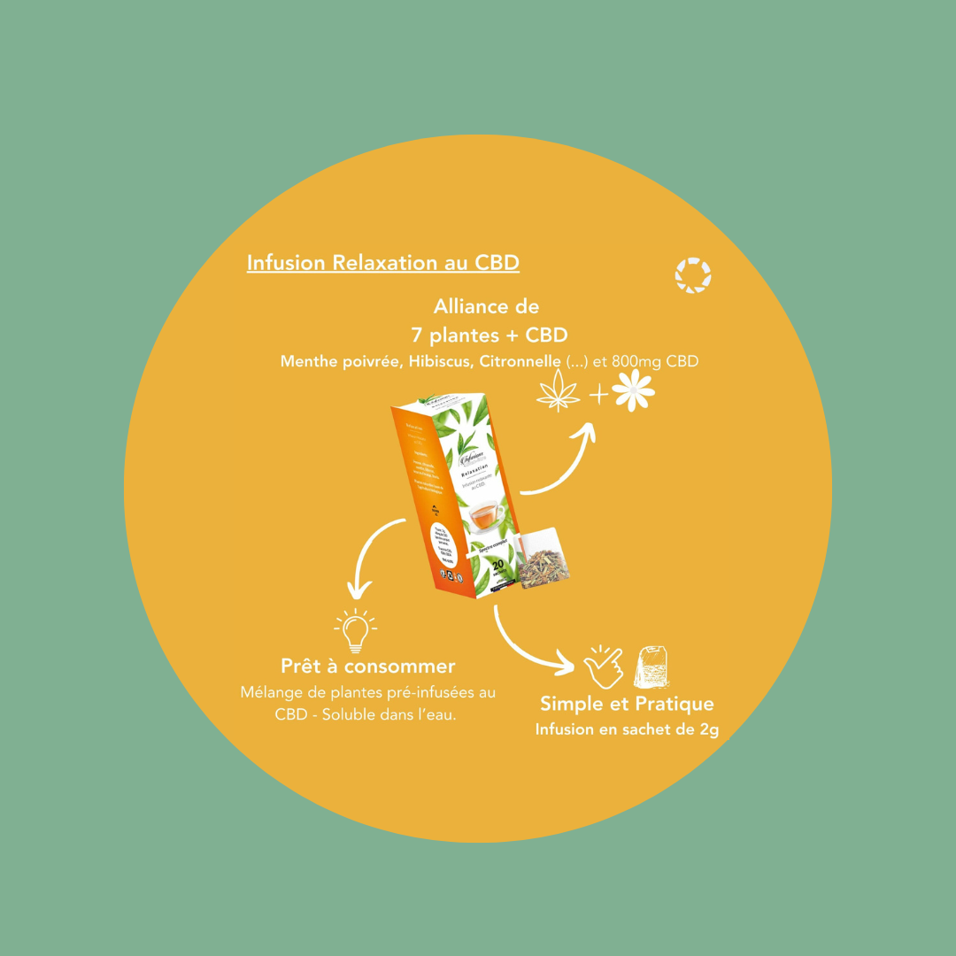 Infusion CBD Relaxation spectre complet – Boîte de 20 sachets – 40mg de CBD par sachet